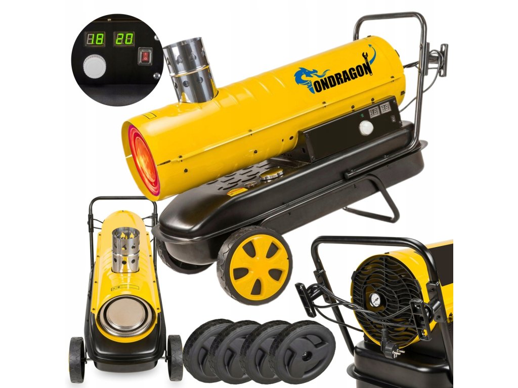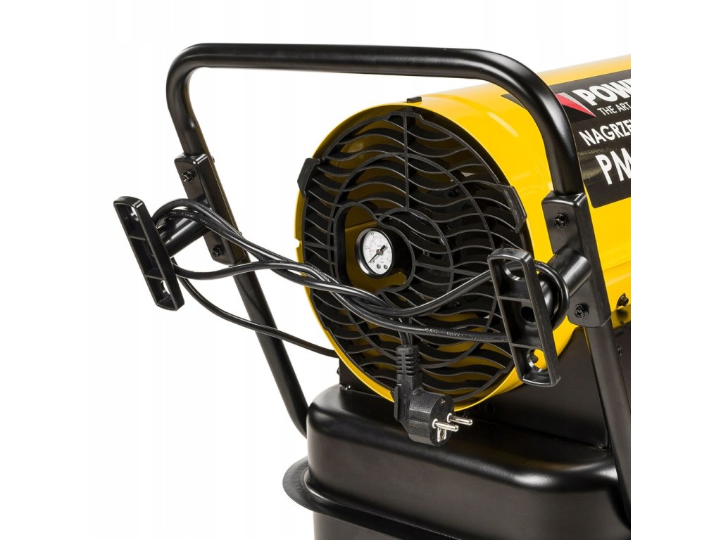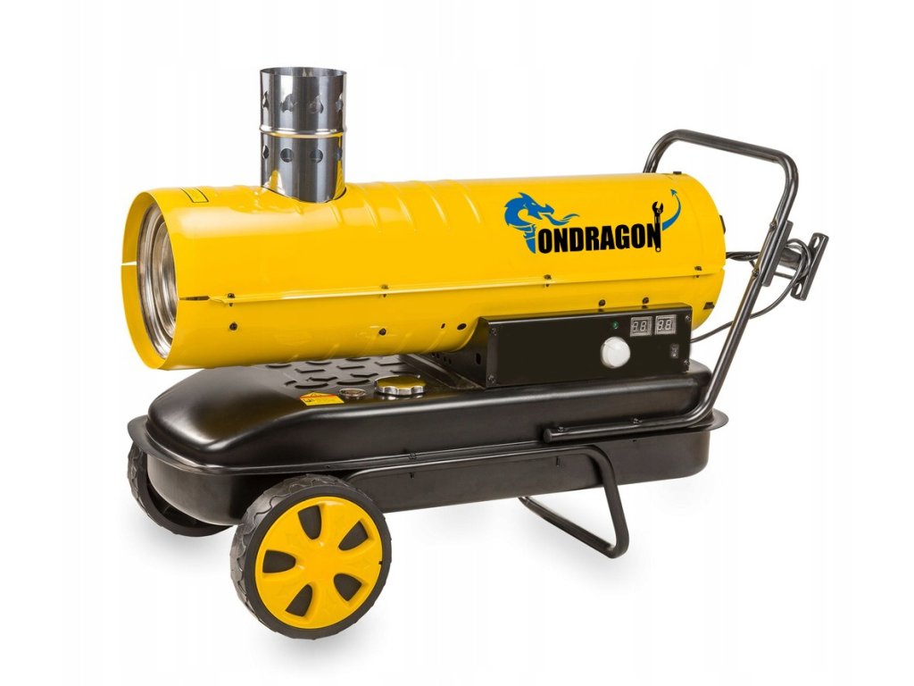Aerotermă profesională pe combustibil lichid Powermat cu o putere de 40 kW, cu evacuare a gazelor de ardere și control digital, este concepută pentru încălzirea eficientă a spațiilor mari, cum ar fi hale, ateliere, depozite sau șantiere. Datorită coșului integrat, tot fumul este evacuat din încălzitor în afara spațiului încălzit, iar în spațiu intră doar aer curat și fierbinte. Ecranul LCD cu termostat electronic permite setarea precisă a temperaturii și economisirea combustibilului. Construcția robustă și designul mobil permit utilizarea chiar și în cele mai solicitante condiții.