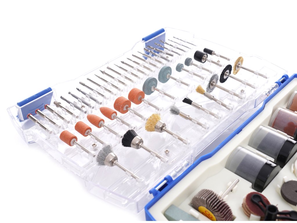 Setul conține accesorii care permit realizarea activităților precum: sculptură în lemn, gravură, șlefuire, ascuțire, curățare, lustruire, tăiere și multe altele.