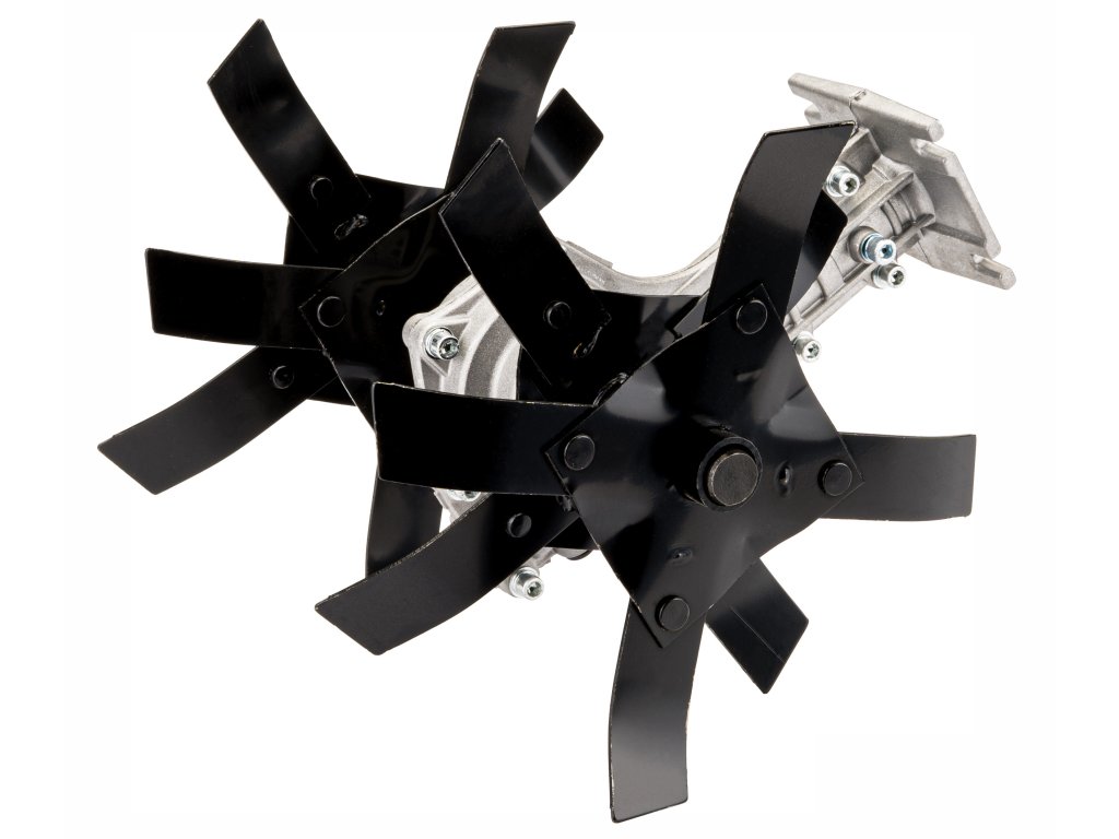 - Accesoriu pentru motocoasa cu benzină - rotavatorul permite aerarea și afânarea solului, fiind ideal pentru pregătirea substratului pentru cultivarea plantelor.