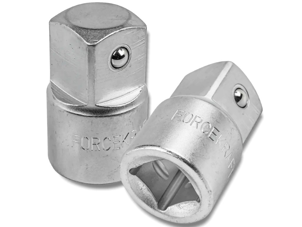 Adaptorul FORCEKRAFT 3/4" (intern) x 1" (extern) este o unealtă practică și fiabilă care permite conectarea rapidă și convenabilă a accesoriilor cu diferite dimensiuni pătrate. Adaptorul este conceput pentru utilizare cu clichete, extensii și chei tubulare atât în atelier, cât și acasă.