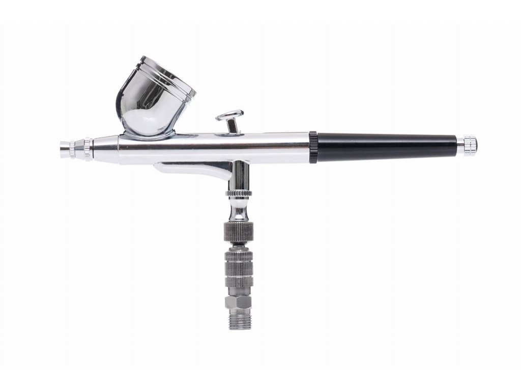 Setul este fabricat din materiale de înaltă calitate, cu accent pe detalii. Pistolul are reglaj pentru debitul de culoare, pe care îl setați cu ajutorul șurubului de reglaj de la capătul mânerului. Duze înlocuibile permit alegerea formei și a lărgimii jetului, estomparea sau focalizarea elementelor vopsite, în funcție de lucrarea efectuată.