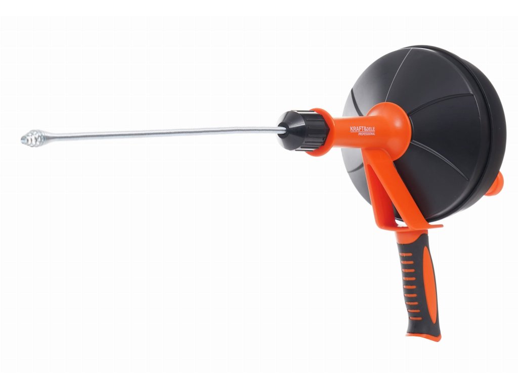 Furtun spiralat pentru canalizare marca Kraft&Dele, model KD11765, este destinat curățării conductelor de canalizare cu ajutorul unei bormașine sau a unei șurubelnițe. Se utilizează pentru eliminarea tuturor blocajelor cu care produsele chimice nu se descurcă. Mișcarea de rotație a burghiului transmite o mișcare de avans a spiralului. Spirala este fabricată din sârmă de arc galvanizată, care asigură o durată lungă de viață.