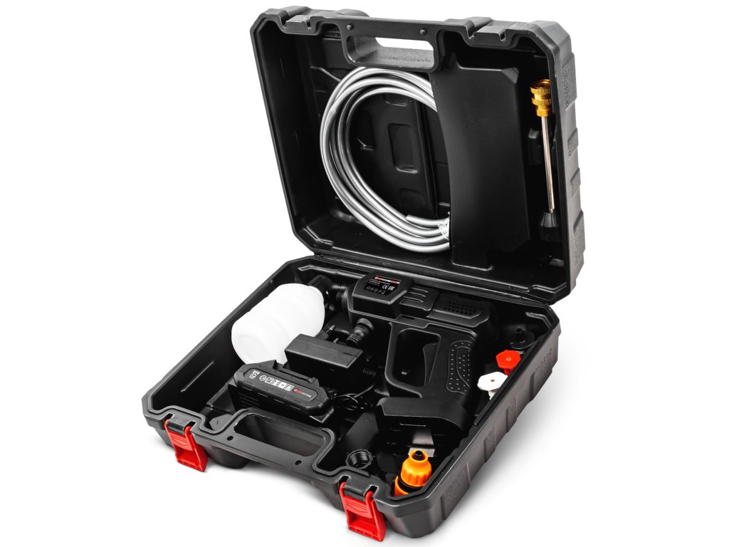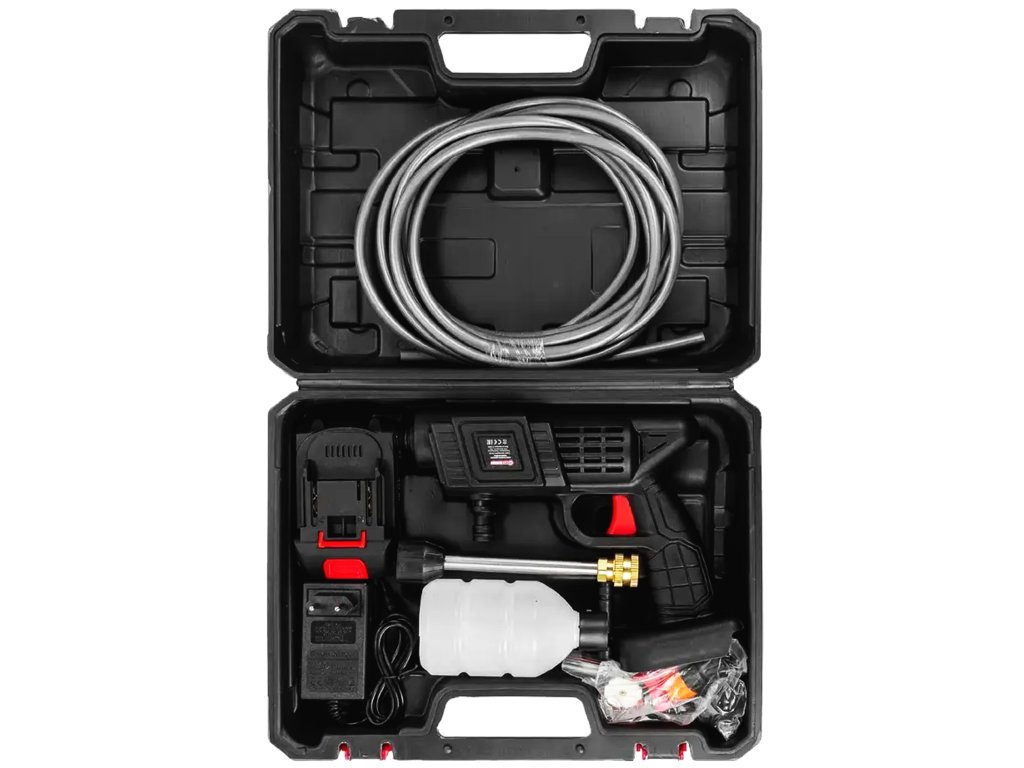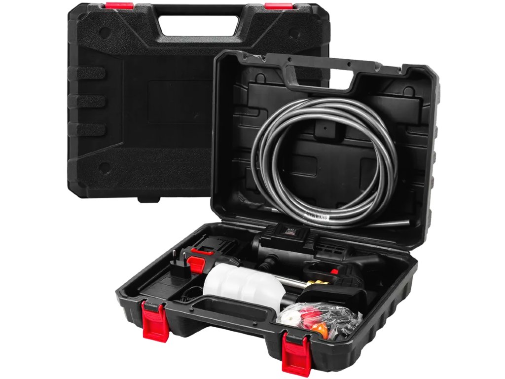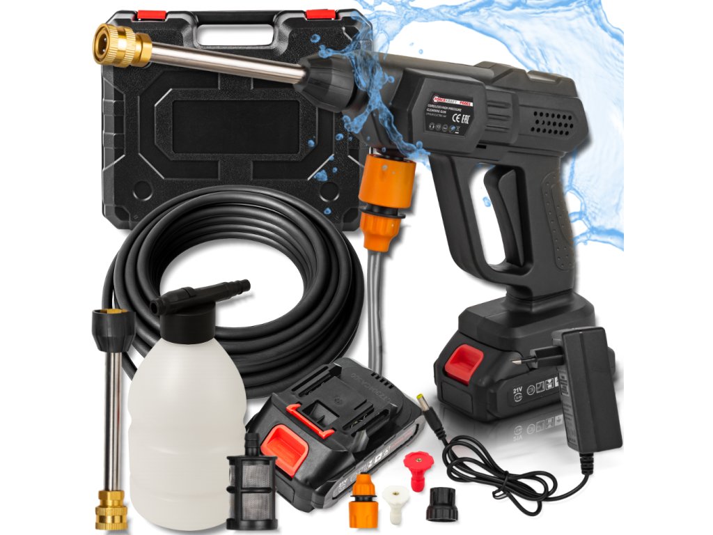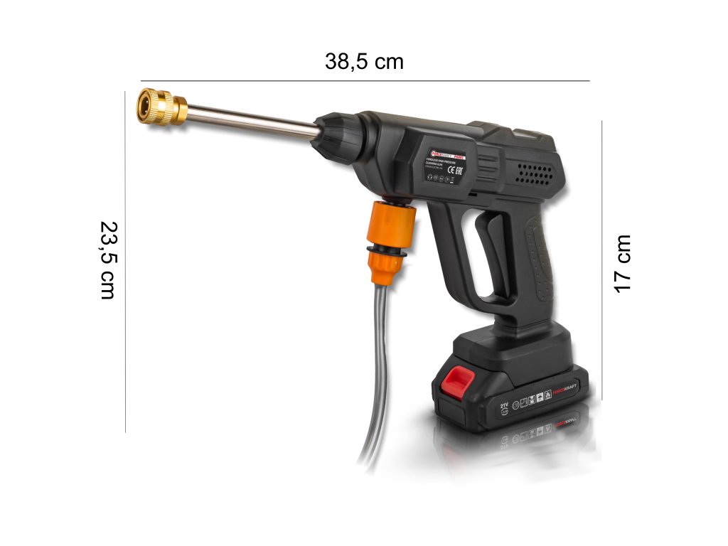 Aparatul de spălat cu înaltă presiune fără fir de 21 V este un dispozitiv mobil și versatil , perfect pentru casă, grădină, garaj și în călătorii. Datorită alimentării cu baterie, funcționează fără cablu și fără restricții, în timp ce designul compact îl face ușor de transportat și utilizat oriunde.