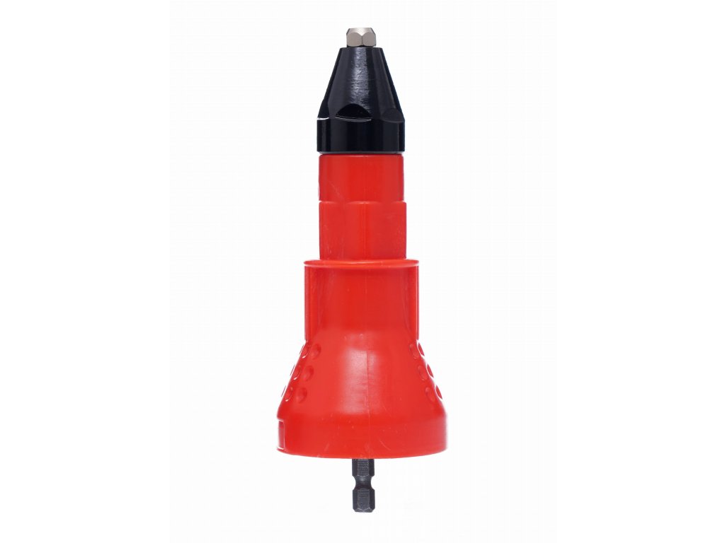 Instrument ideal pentru lucrări mobile unde nu există acces permanent la o instalație de aer comprimat. Înlocuiește pistoalele de nituire pneumatice și manuale. Funcționează excelent cu mașinile de înșurubat cu acumulator și cu burghiele alimentate de la rețea. Adaptorul poate fi utilizat cu orice bormașină sau burghiu standard.