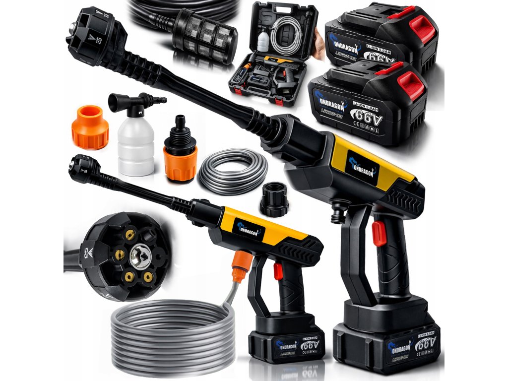 Aparat de spălat cu presiune cu acumulator 66V, 2× acumulator 5Ah, duză multiplă, 6 moduri
