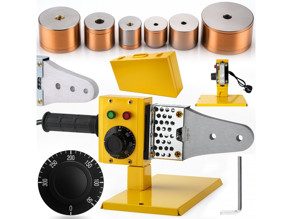 Aparatul de sudură puternic este un asistent indispensabil pentru instalarea sistemelor de alimentare cu apă și încălzire din țevi din plastic PE, PP și PB. Datorită puterii sale de 1500 W și a unei temperaturi maxime de până la 320 °C, poate suda rapid și fiabil țevi și fitinguri direct la fața locului. Setul include șase accesorii din teflon, o cutie metalică practică și alte accesorii care facilitează munca.