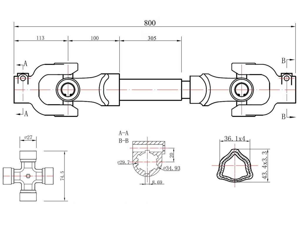 - Articulații cardanice: 27 x 74,5 mm