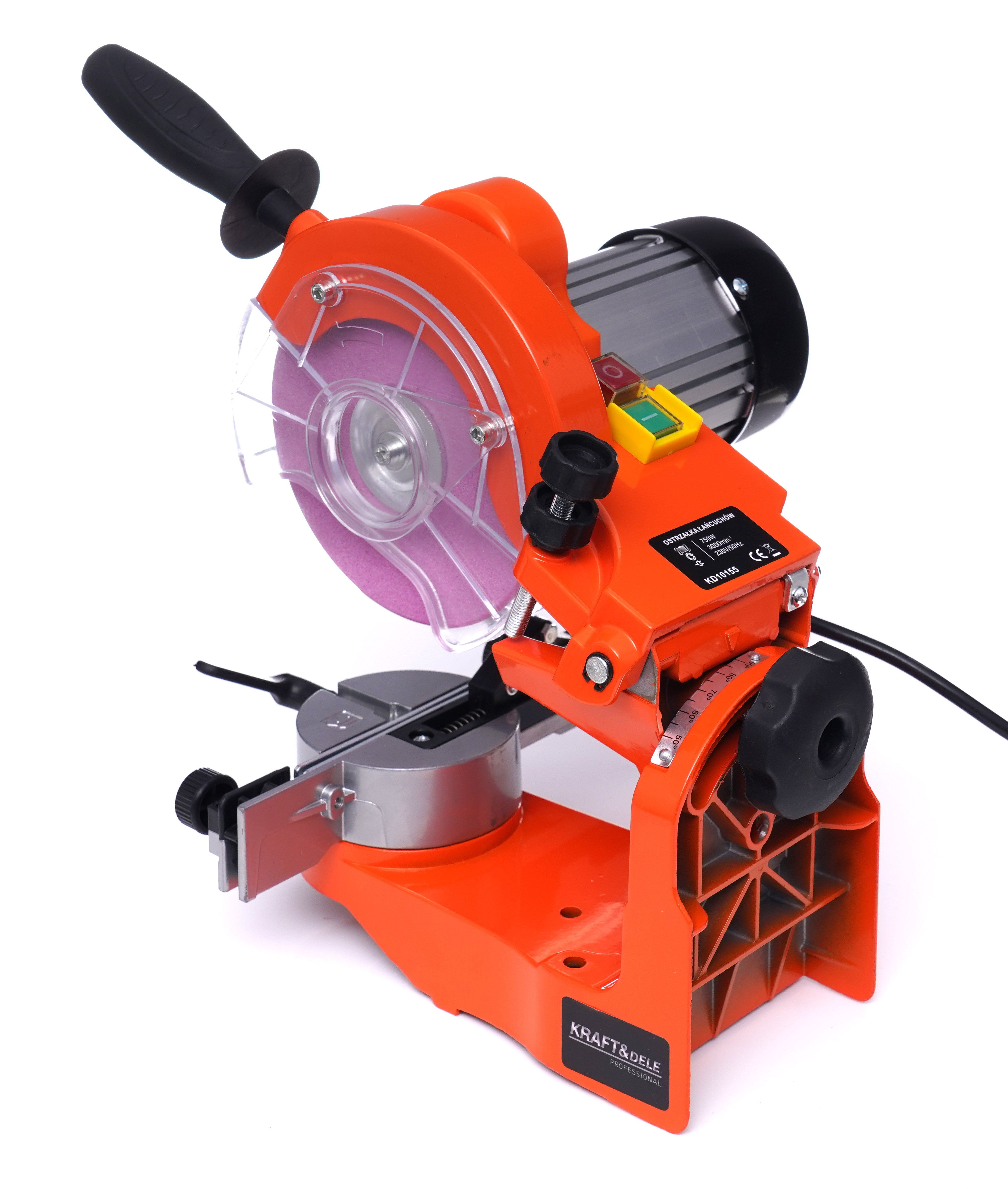 Ascutitor electric de lanțuri marca KRAFT&DELE, prin care puteți ascuți rapid și ușor lanțul ferăstrăului cu motor. Produsul este robust constructiv și are un motor puternic de 750W.