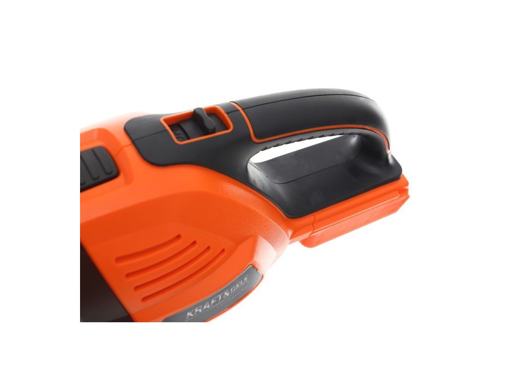 Aspiratorul de mână cu acumulator, model KD1776, din seria PROSERIES, cu un motor de 18V alimentat de o baterie universală PROSERIES, este menit să aspire în locuri greu accesibile pentru aspiratoarele tradiționale.