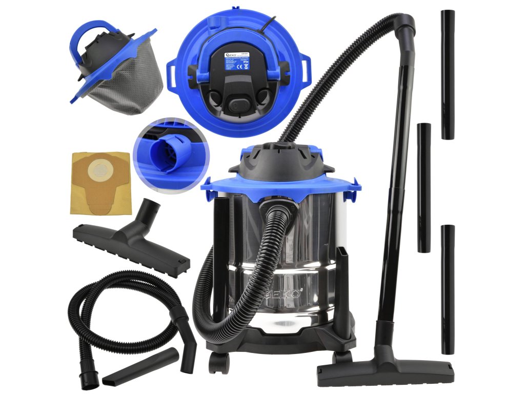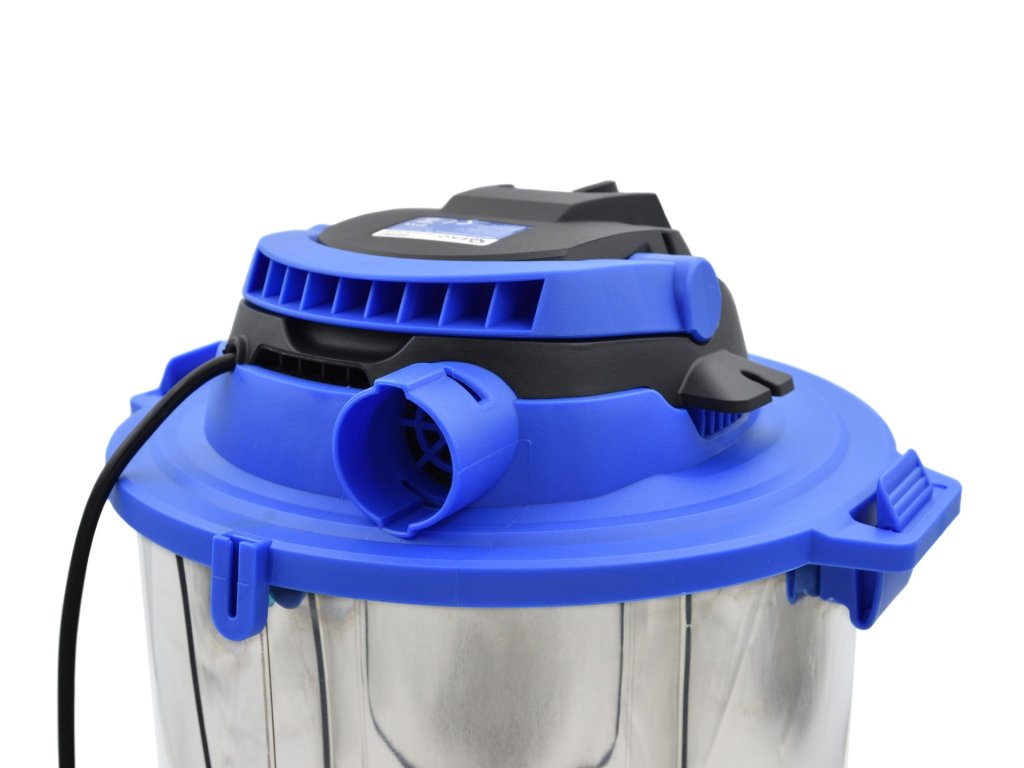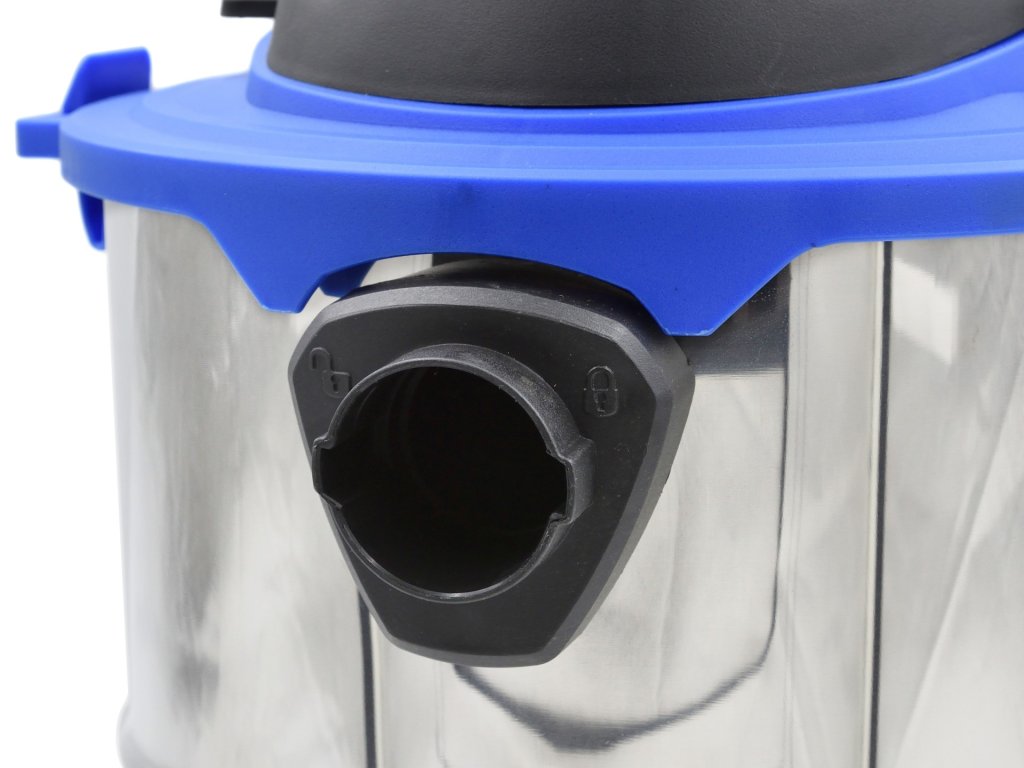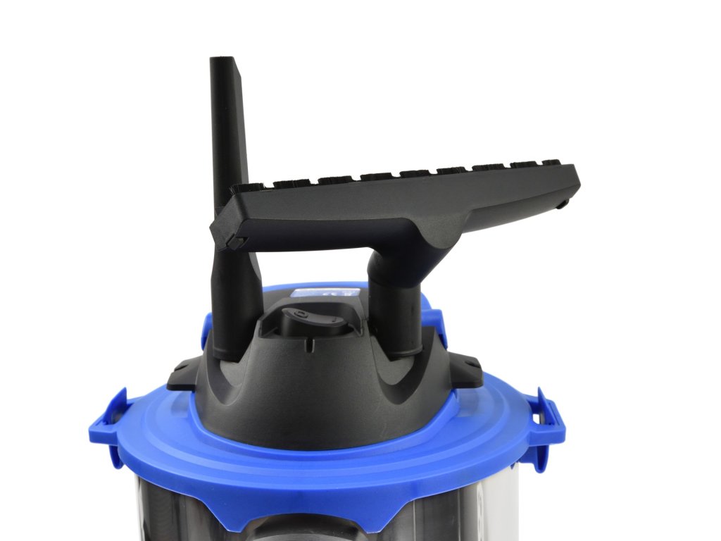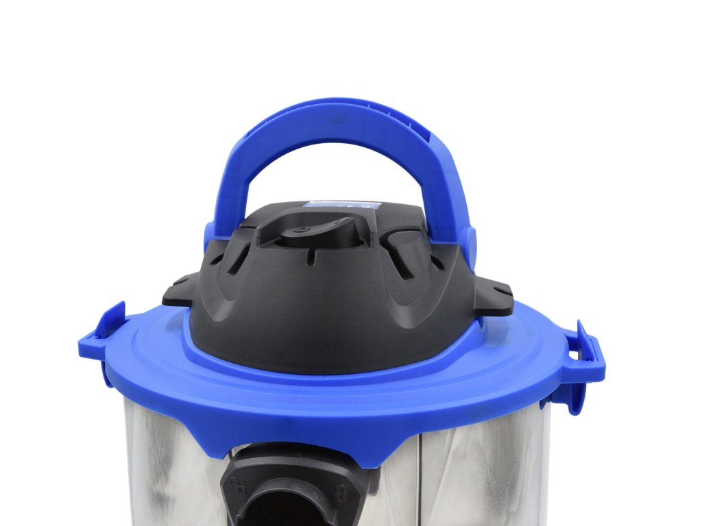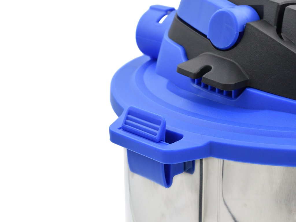 Recipientul cu o capacitate de 20 litri este fabricat din oțel inoxidabil rezistent, asigurând o durată lungă de viață. În plus, oferă o funcție practică de suflare, care facilitează îndepărtarea murdăriei din locurile greu accesibile. Patru roți pivotante asigură ușurința deplasării aspiratorului prin spații.