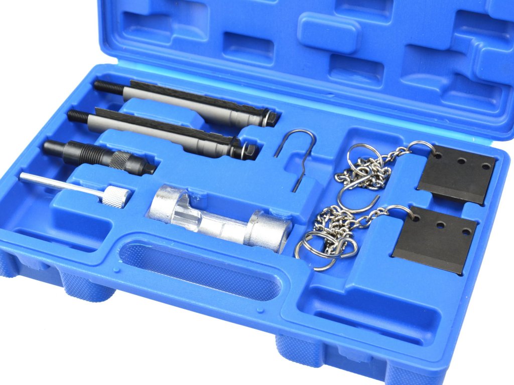 Acest set de unelte specializate este destinat pentru blocarea distribuțiilor în motoarele vehiculelor din grupul VAG (V6/V8 TDI). Este compatibil cu modelele: