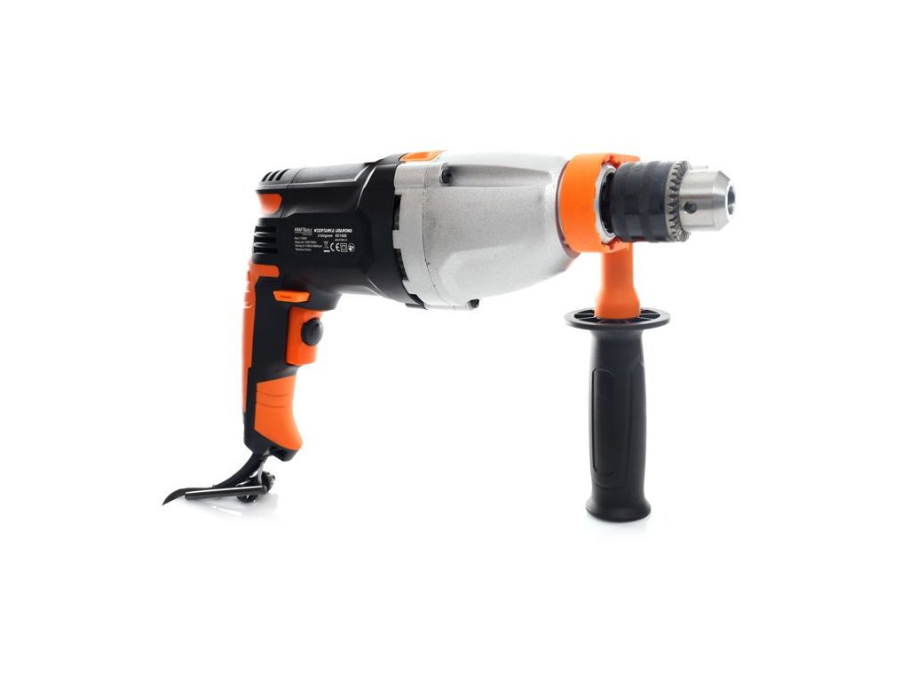Bormașina cu percuție electrică Kraft&Dele KD1688, cu o putere de 1700W, este proiectată pentru găurirea cu impact în pereți, beton și piatră, precum și pentru găurirea în metal, ceramică, lemn și plastic. Mânerul principal este realizat dintr-un material special anti-alunecare care facilitează prinderea aparatului. Acest model este echipat cu un mâner lateral suplimentar. Aparatul cu control electronic și posibilitatea de rotire atât în sensul acelor de ceasornic, cât și în sens invers, este adaptat pentru înșurubare și filetare. Capul este metalic.