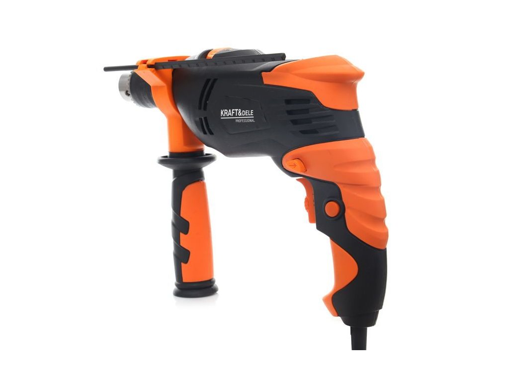 Bormașina cu percuție electrică Kraft&Dele KD1685 cu puterea de 1700W este destinată forării cu lovire în ziduri, beton și piatră, precum și pentru găurirea în metal, ceramică, lemn și plastic. Mânerul principal este realizat din material antiderapant care facilitează prinderea dispozitivului. Aceasta este o versiune echipată cu un mâner lateral suplimentar. Mandrina este fabricată din plastic.