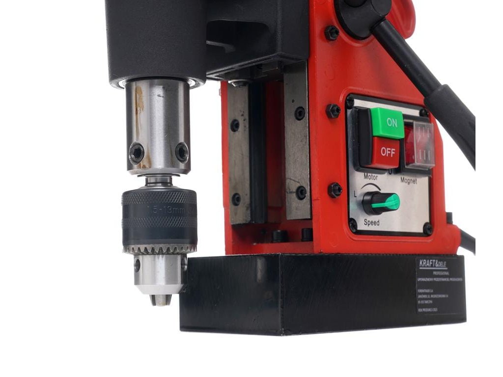 Bormașina magnetică portabilă marca Kraft&Dele model KD1381 este ideală pentru găurire, lărgirea găurilor și dimensionare. Este utilă în construcția de poduri, transportul feroviar, industria chimică, șantiere navale și alte sectoare care se ocupă cu producția de oțel și fier. Mașina performează și în condiții de lucru dificile.