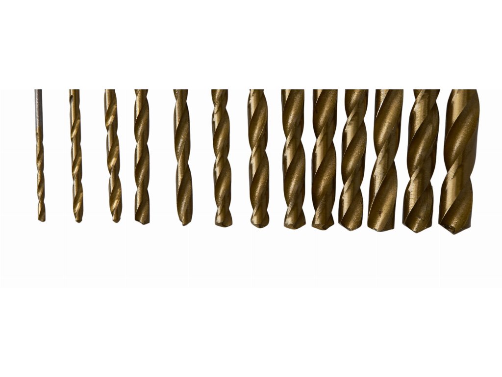 Setul nostru este recomandat de specialiști pentru găurire în oțeluri rezistente la acid, oțeluri de înaltă calitate, metale colorate și oțel inoxidabil. Burghiele rezistente și fiabile sunt acoperite cu nitrură de titan, ceea ce prelungește durata de viață a burghielor și îmbunătățește calitatea finisajului găurii.