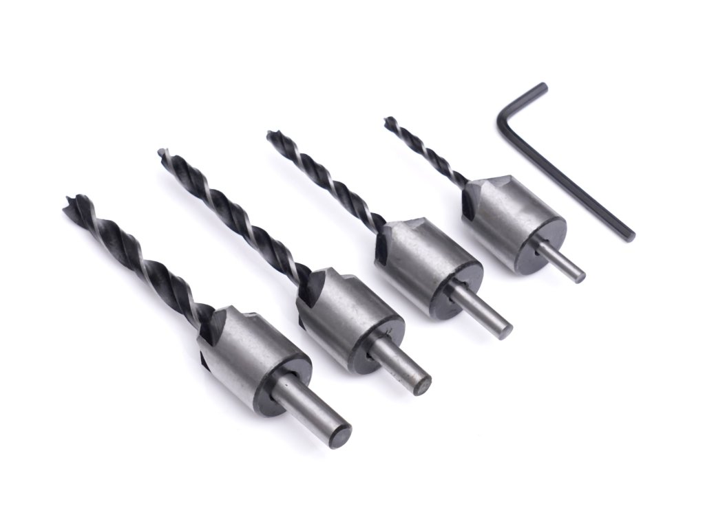 Burghiele trepte pentru lemn cu freză de adâncime reglabilă includ: