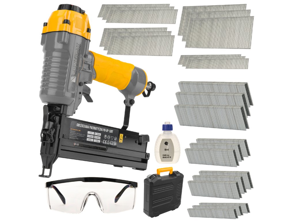 Capsator și ciocan pneumatic set 2în1 PM-GP-100T este un instrument puternic destinat atât profesioniștilor, cât și pasionaților de bricolaj, care se ocupă cu lucrări de tâmplărie și de construcții de mici dimensiuni. Este un ajutor ideal în orice atelier de acasă, oferind caracteristici excelente la un preț accesibil.