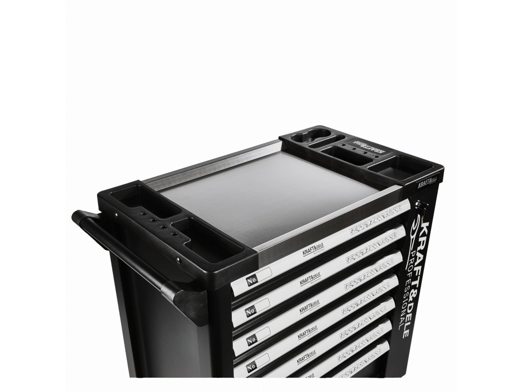 Este dotat cu 7 sertare pe rulmenți cu bile și un spațiu de depozitare pe două niveluri securizat cu cheie. Sertarele au ghidaje și un mecanism cu bile pentru deschidere ușoară. Fiecare dintre ele este prevăzut cu un sistem de siguranță. Construcția permite montarea unui clește pe blatul de lucru și a altor suporturi pentru prosoape sau substanțe chimice pe ambele părți ale căruciorului. Căruciorul este echipat cu 4 roți pivotante, care au blocare automată și frână, ceea ce face imposibilă mutarea dulapului. Asigură siguranță chiar și pe pante ușoare. Sertarele sunt acoperite cu un material moale și elastic EVA, care își păstrează proprietățile chiar și la diferite temperaturi.