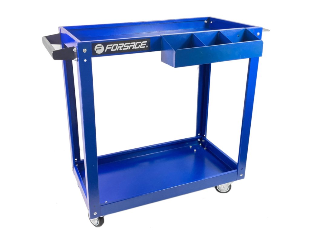 Cărucior de scule pentru atelier cu două rafturi și organizator