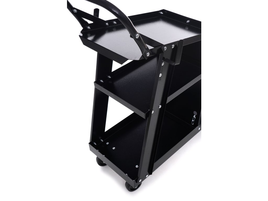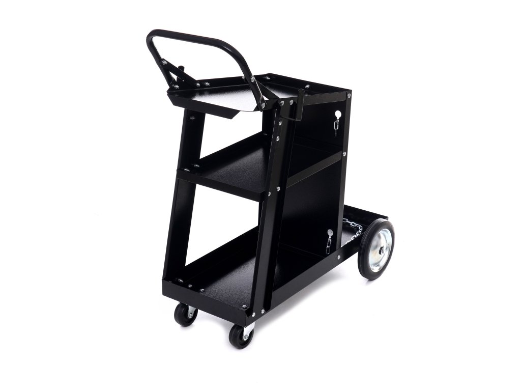 Căruciorul profesional de sudură este soluția ideală pentru transportul seturilor de sudură MIG/TIG sau cu plasmă, precum și pentru utilizarea liberă în ateliere. Căruciorul dispune de un raft superior extins și 2 rafturi. Construcția solidă și rezistentă din oțel de cea mai înaltă calitate asigură că căruciorul poate suporta până la 75 kg. Roțile mai mari în spate și cele mai mici în față permit manevrarea ușoară chiar și sub încărcături mari.
