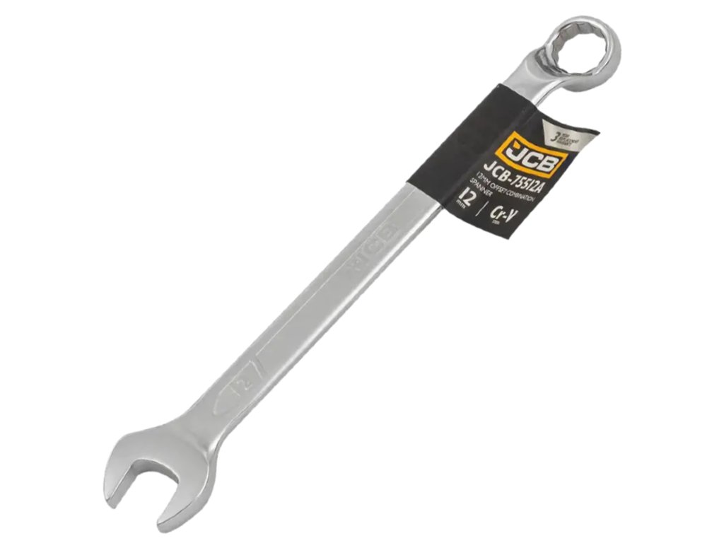 Cheie combinată JCB 12 mm, cu două laturi, unghiulară 75°, Cr-V, cu 12 vârfuri