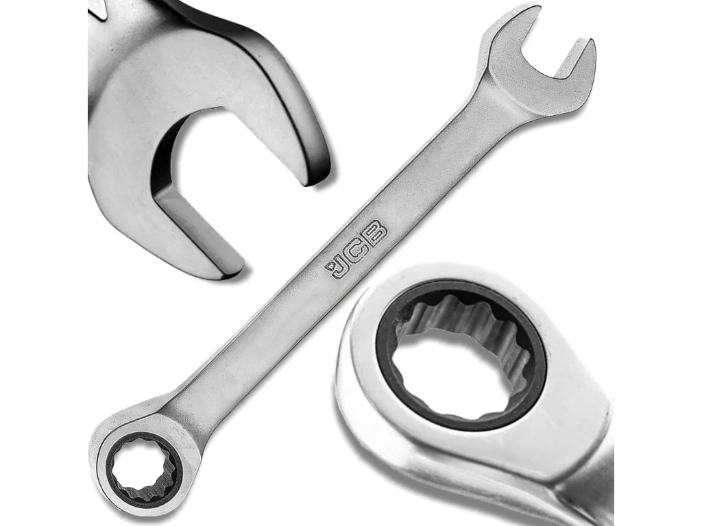 Cheie combinată JCB 15 mm, scurtă, cu două laturi, cu clichet, Cr-V, cu 12 vârfuri