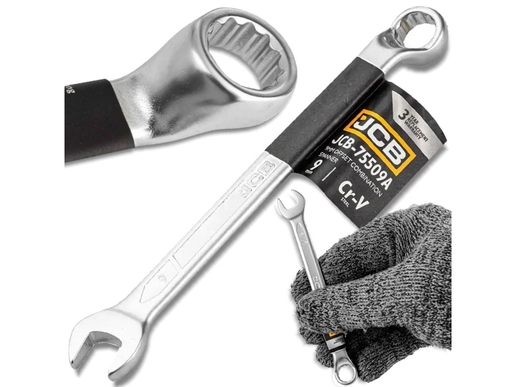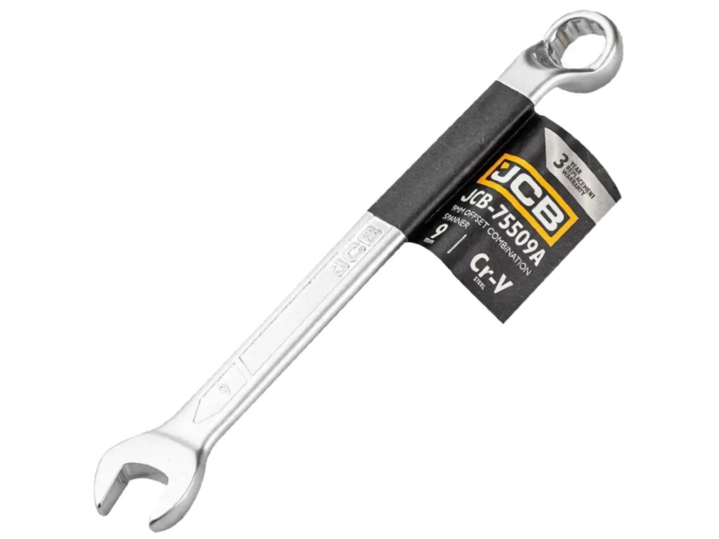 Cheie combinată plată JCB 9 mm, unghiulară 75°, oțel Cr-V, cu două laturi