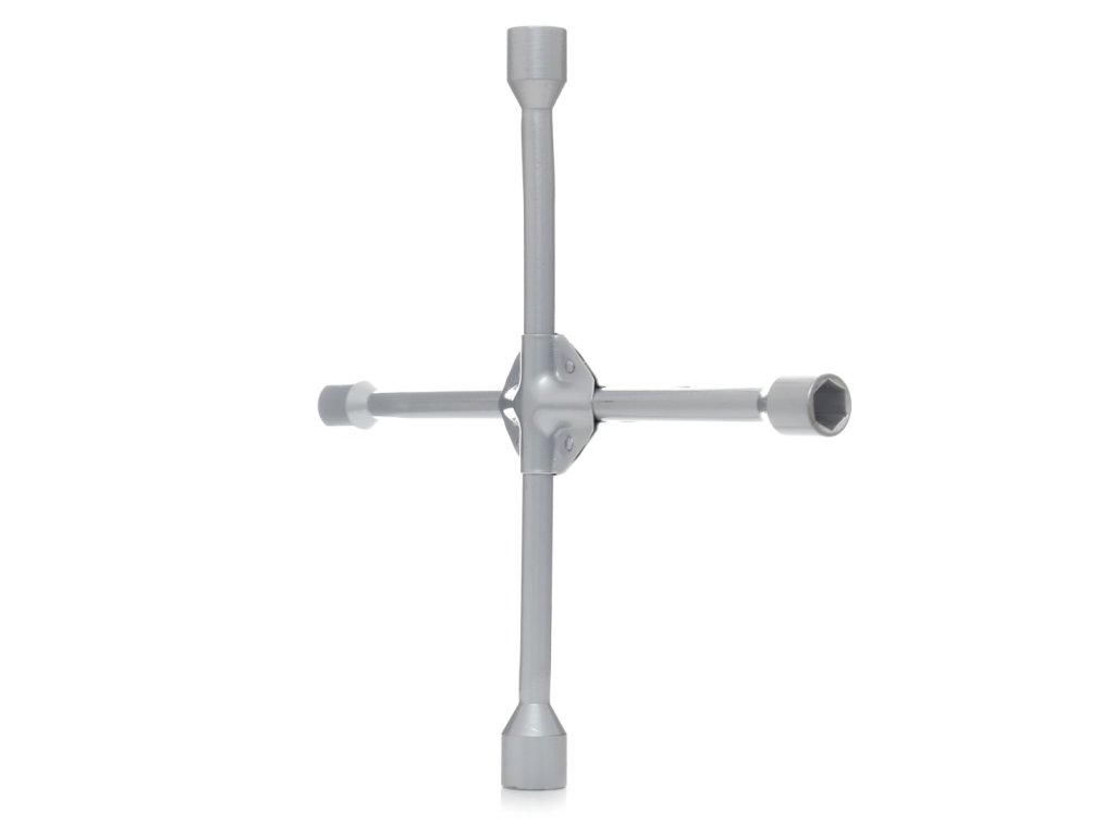 Cheia cruce de înaltă calitate este alegerea ideală pentru schimbarea roților acasă și ca parte esențială a echipamentului pentru autoturisme și vehicule comerciale ușoare. Această unealtă se descurcă fără probleme chiar și cu cei mai ruginți șuruburi, fiind un ajutor perfect în orice situație!