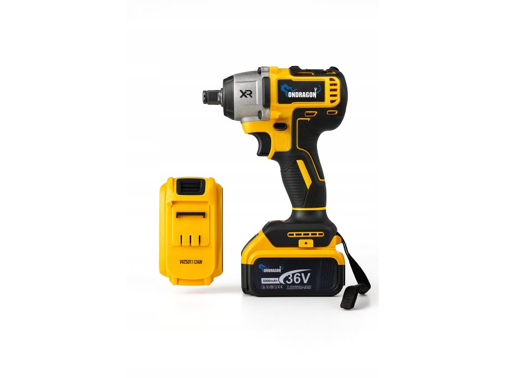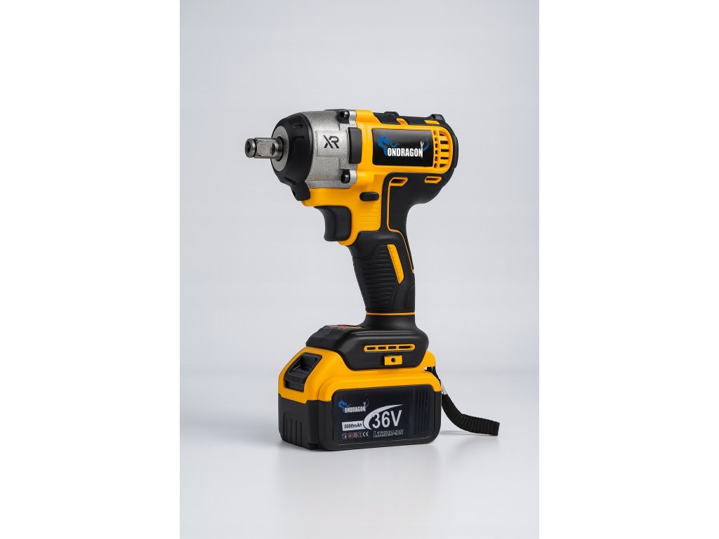Cheia de impact fără fir puternică Ondragon este un ajutor ideal pentru service auto, construcții și ateliere de acasă. Datorită cuplului ridicat de 380 Nm, poate slăbi cu ușurință chiar și șuruburi și piulițe ruginite. Cheia este echipată cu două baterii Li-Ion de 36V cu o capacitate de 5 Ah, asigurând o muncă lungă și continuă, fără a fi nevoie să așteptați reîncărcarea. Designul compact, greutatea redusă și iluminarea LED permit utilizarea convenabilă chiar și în locuri greu accesibile și slab iluminate.