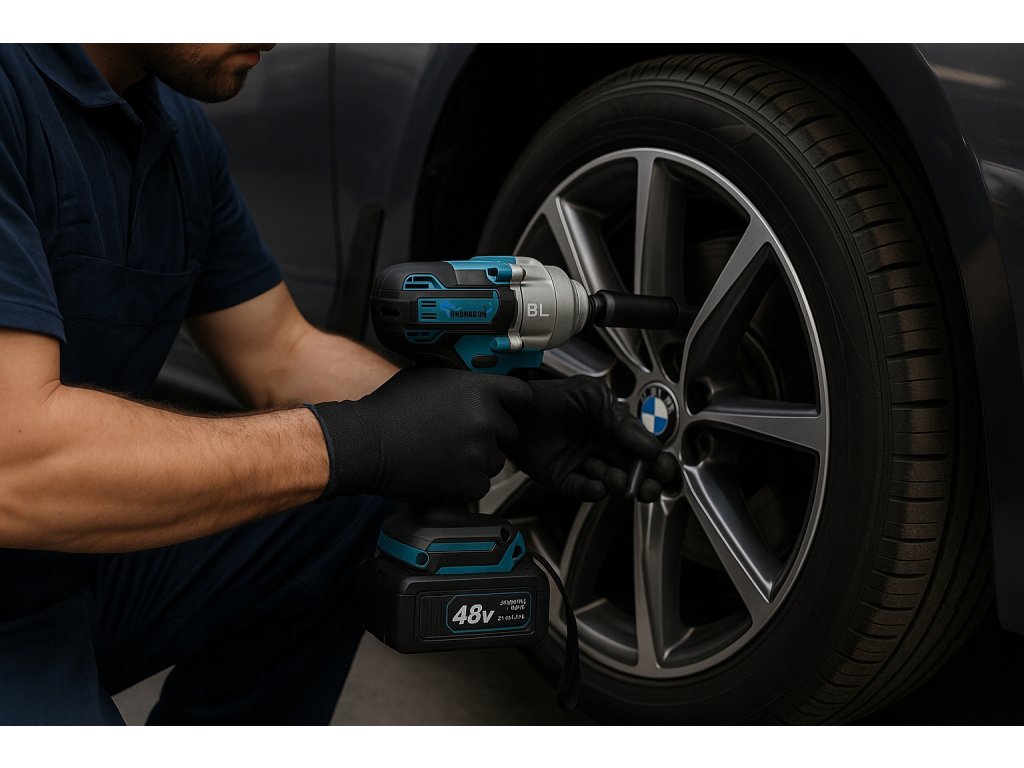 Cheie de impact fără fir 48V 650 Nm – 2× baterii, set de accesorii, LED, geantă