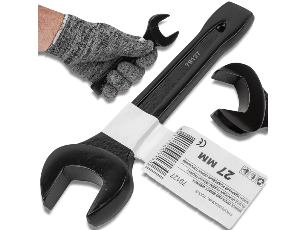 Cu construcția sa solidă pe o singură față și capătul mânerului cu impact, cheia transmite eficient forțe mari fără riscul de îndoire sau vibrații. Ideală acolo unde nu există suficient spațiu pentru o pârghie sau unde cuplurile sunt suportate de impact.