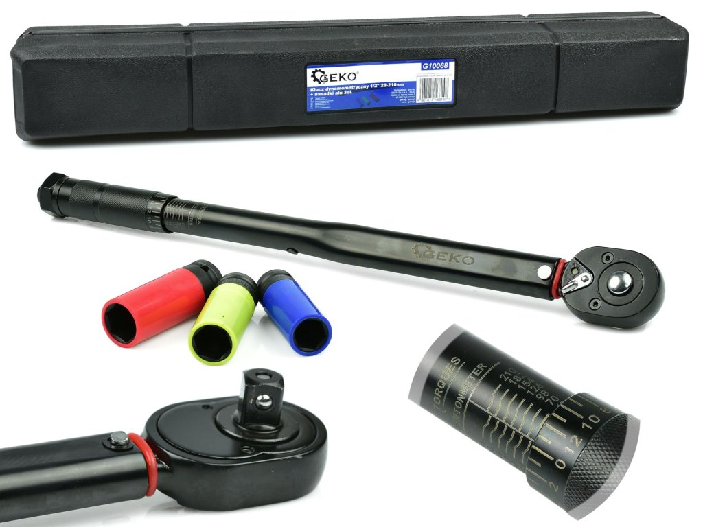Cheie dinamometrică destinată pentru strângerea precisă a șuruburilor și piulițelor cu o forță constantă. Mecanismul de reglare a forței de strângere, împreună cu o scală lizibilă, se află în mâner. Cheia este echipată cu trn 1/2" și funcționează în intervalul 28-210 Nm.