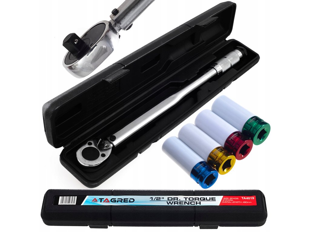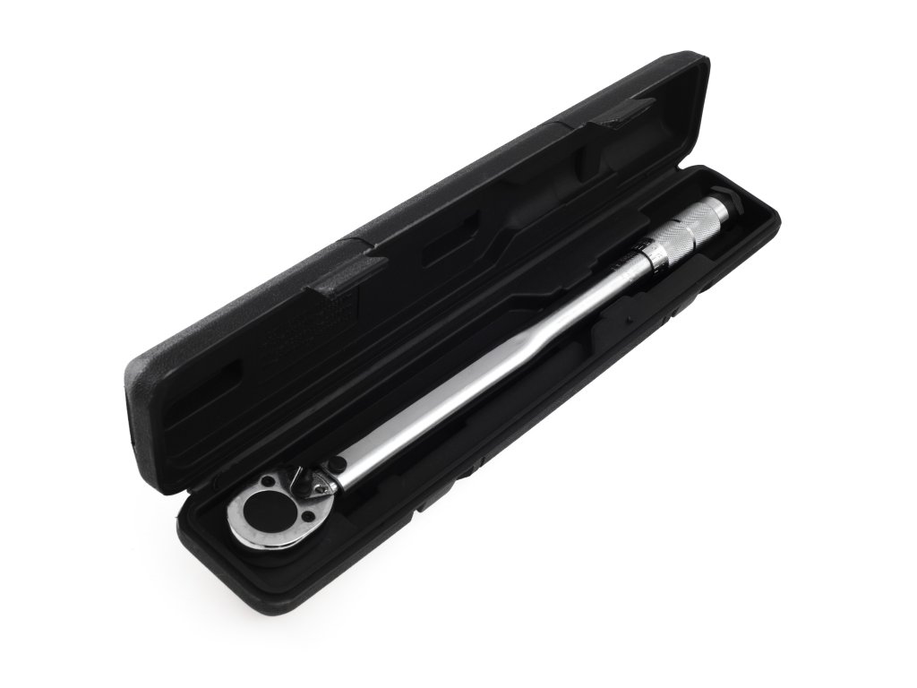 - Cheie dinamometrică 1/2" cu lungimea de 480 mm și valoarea momentului de 42-210 Nm (20 kg) cu sistem de blocare.