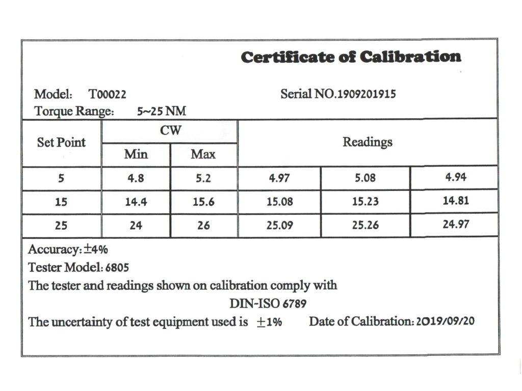 - Interval de lucru: 5 - 25 Nm