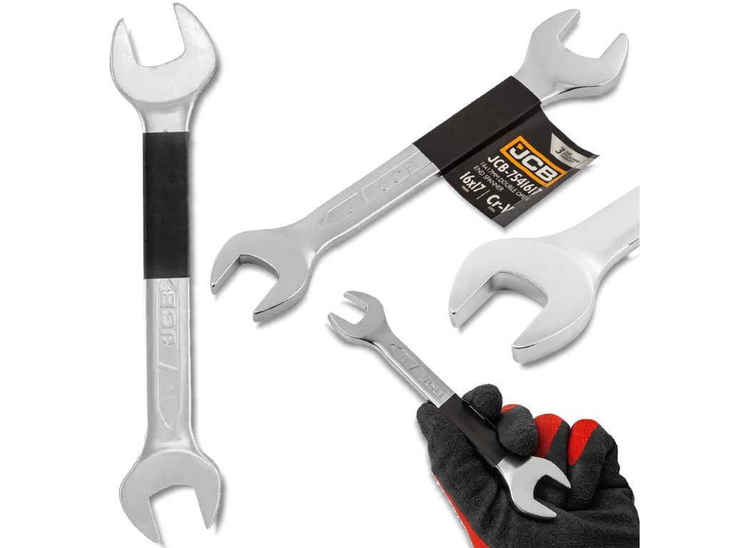 Cheie fixă JCB 16–17 mm, Cr-V, cu cap dublu, plină, standard