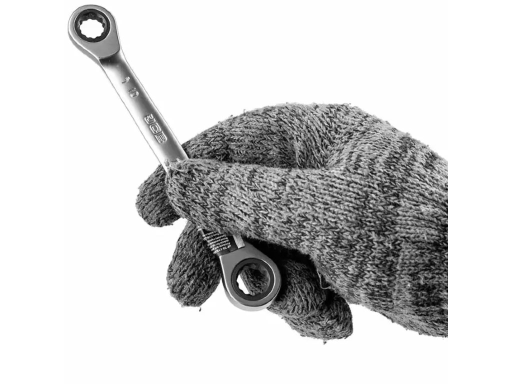 Cheia cu clichet dublu de 10x12 mm este o unealtă profesională concepută pentru utilizatorii care solicită eficiență maximă și confort în lucru. Datorită mecanismului cu clichet (ratchet), puteți slăbi și strânge șuruburile fără a fi nevoie să scoateți cheia din elementul de fixare — acest lucru este util în special în locuri înguste și greu accesibile.