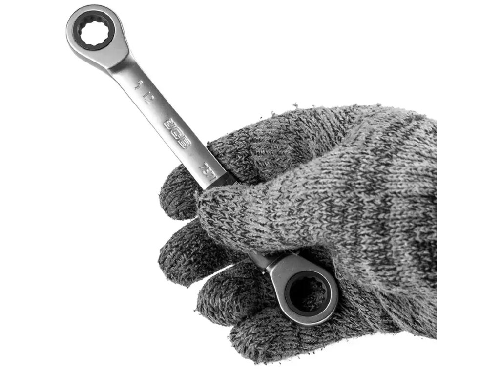 Cheia inelară combinată cu două capete de 12x13 mm și clichet este o unealtă profesională concepută pentru utilizatorii care solicită eficiență și confort maxim în timpul lucrului. Datorită mecanismului cu clichet (ratchet), puteți slăbi și strânge șuruburile fără a fi nevoie să scoateți cheia din elementul de fixare — lucru pe care îl veți aprecia mai ales în locurile înguste și greu accesibile.