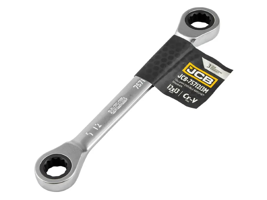 Cheie inelară cu două capete JCB cu clichet 12×13 mm, Cr-V, cu 12 lame