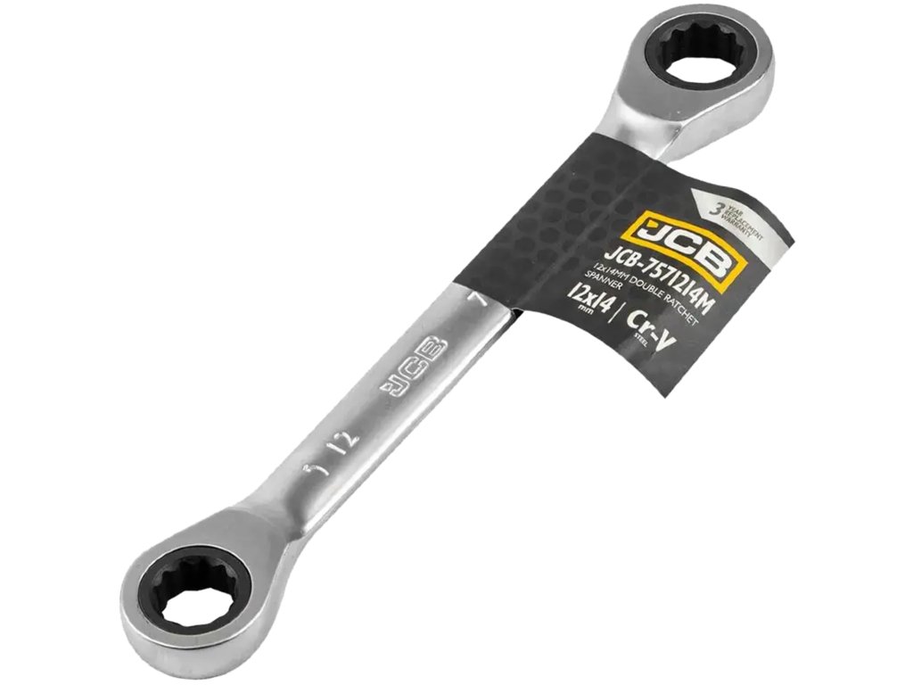 Cheie inelară cu două capete JCB cu clichet 12×14 mm, Cr-V, cu 12 lame