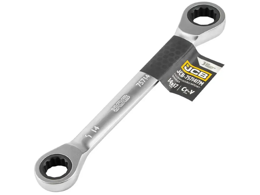 Cheie inelară cu două capete JCB cu clichet 14 x 17 mm, Cr-V, cu 12 vârfuri