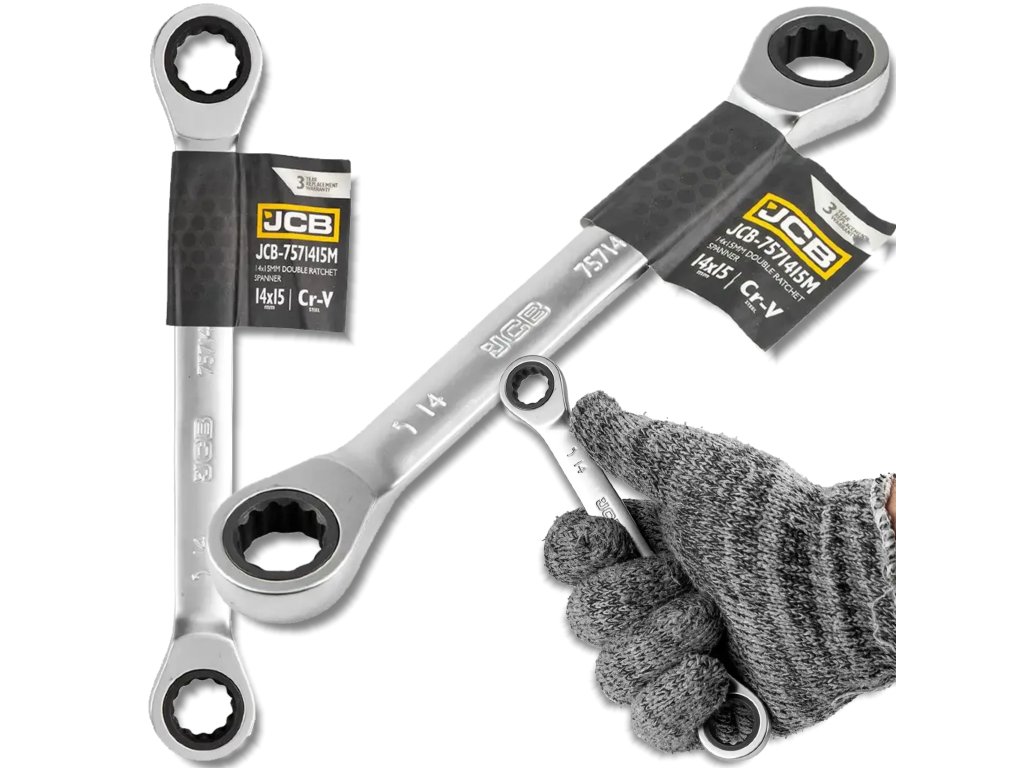 Cheie inelară cu două capete JCB și clichet, 14×15 mm, Cr-V, cu 12 vârfuri