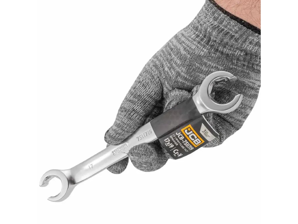 Cheie inelară JCB 17×19 mm, cu două laturi, cu 6 laturi, Cr-V