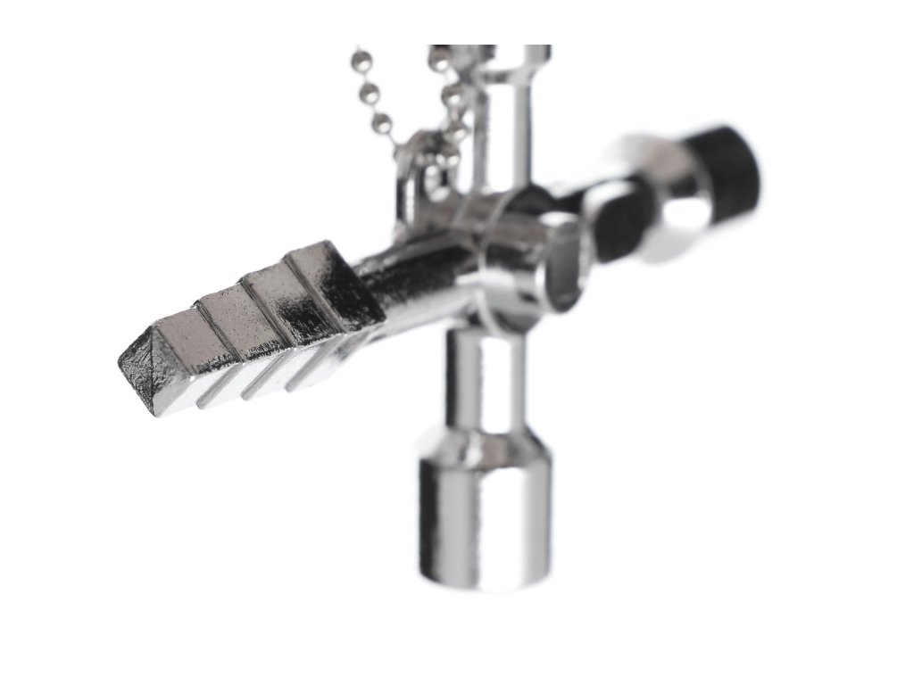 Cheie în cruce pentru dulapuri, este instrumentul ideal pentru deschiderea dulapurilor de contoare de gaz, contoare de apă, măsurători electrice, componente de aer condiționat și supape de închidere, la fel de bine ca și pentru console de rețea și alte echipamente. Această cheie multifuncțională poate fi folosită și pentru deschiderea supapelor și pompelor, ceea ce o face un ajutor indispensabil în multe situații.