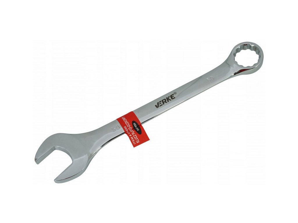 Cheie cu inelare plată de 50 mm de înaltă calitate, din oțel crom-vanadiu. Proiectat pentru lucrul atât acasă, cât și într-un atelier profesional. Îndeplinește standardele DIN 3113 Cheia are o suprafață lustruită estetic.