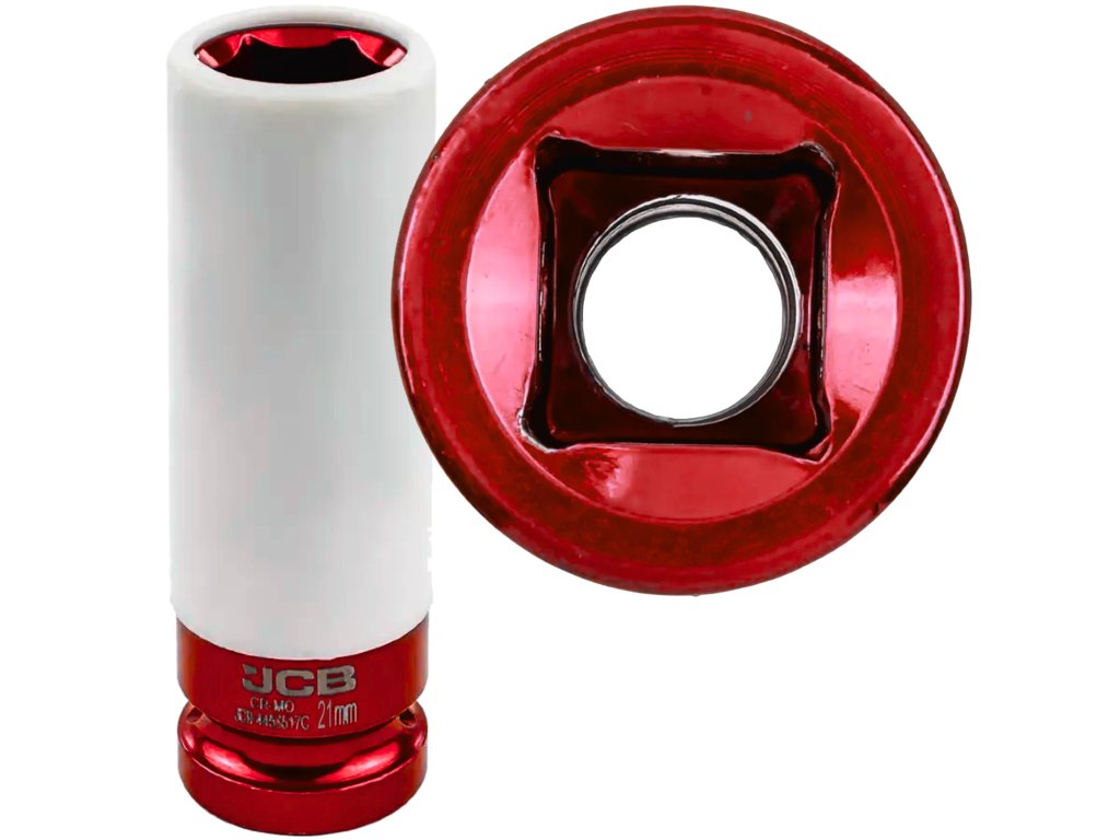 Cheie tubulară adâncă JCB pentru jante ALU 1/2" 21 mm, cu inserție de protecție, Cr-Mo