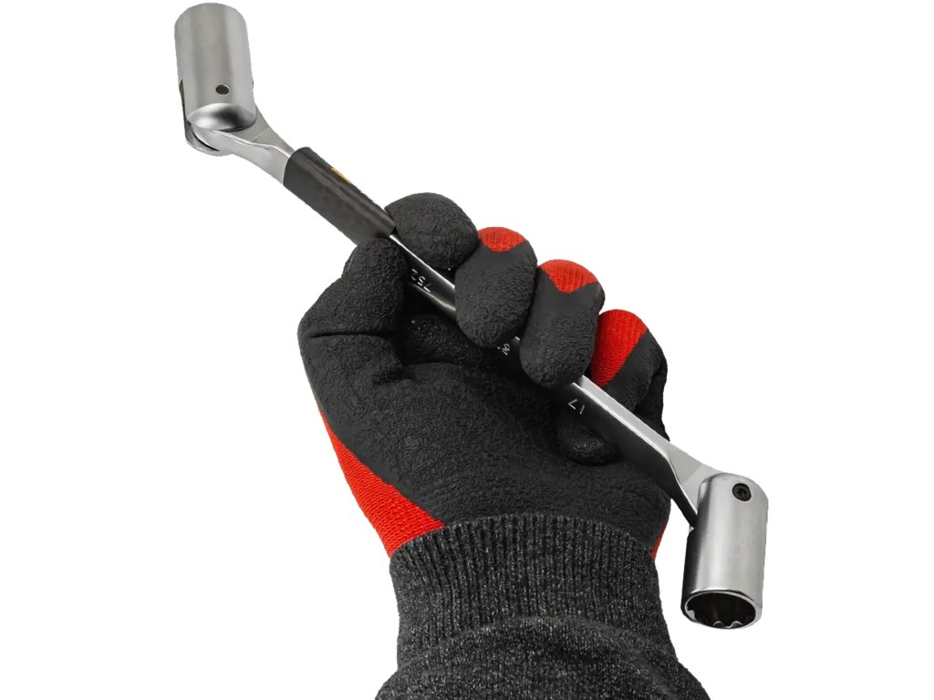 Cheia tubulară dublă de 17x19 mm este o unealtă concepută pentru utilizatorii care au nevoie de o combinație între putere mare și capacitatea de a lucra în spații restrânse. Designul unic al capului său articulat la 180° permite rotirea liberă în ambele direcții, facilitând accesul la șuruburi și piulițe chiar și în cele mai dificile condiții.