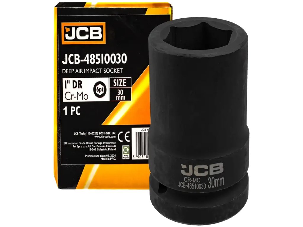 Cheie tubulară de impact JCB 1" 30 mm, adâncă, cu 6 laturi, Cr-Mo