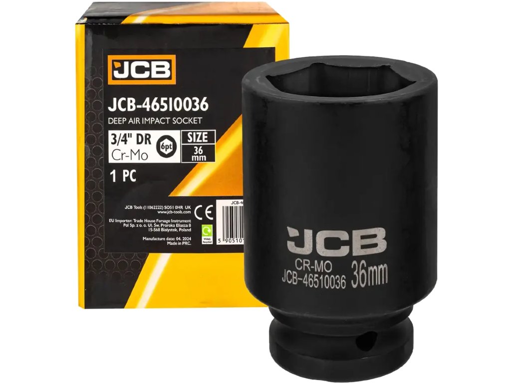 Cheie tubulară de impact JCB 3/4" 36 mm, adâncă, cu 6 laturi, Cr-Mo