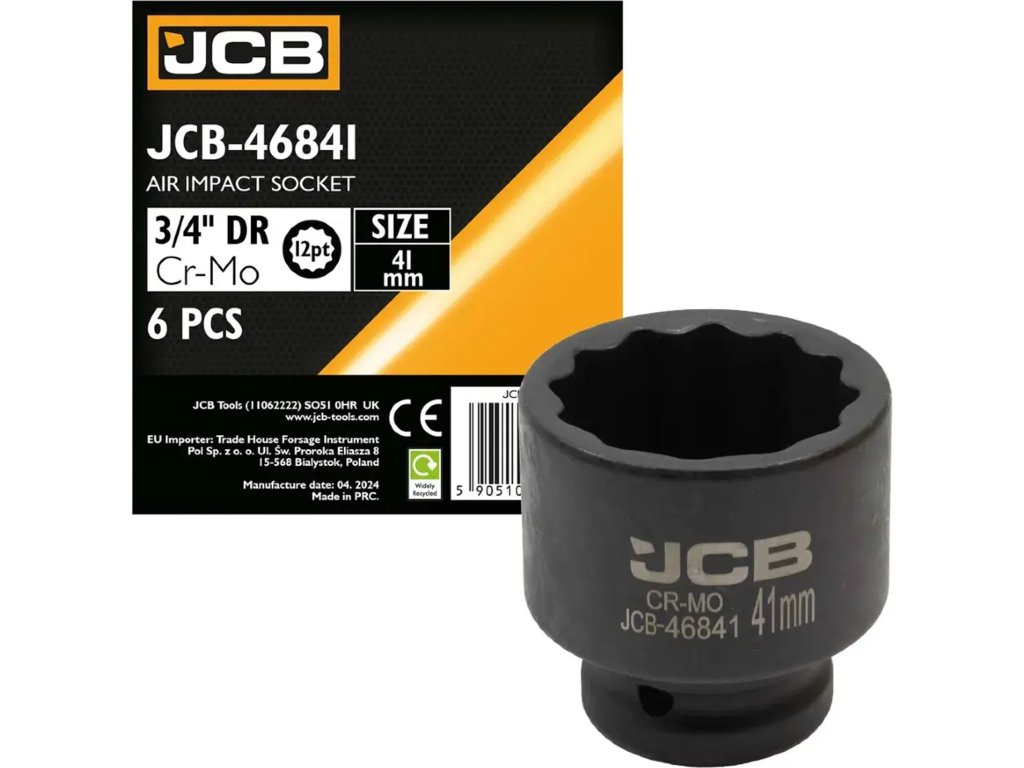 Cheie tubulară de impact JCB 3/4", 41 mm, 12 vârfuri, Cr-Mo