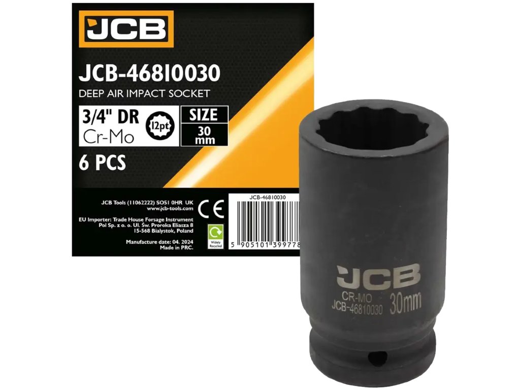 Cheie tubulară de impact JCB 3/4", adâncime, 6 laturi, 30 mm, Cr-Mo